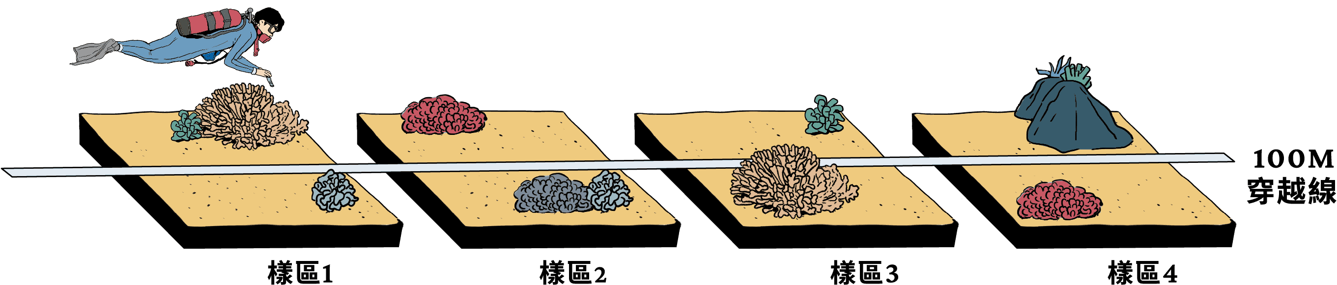 透過「穿越線調查法」來紀錄珊瑚礁的健康狀態!